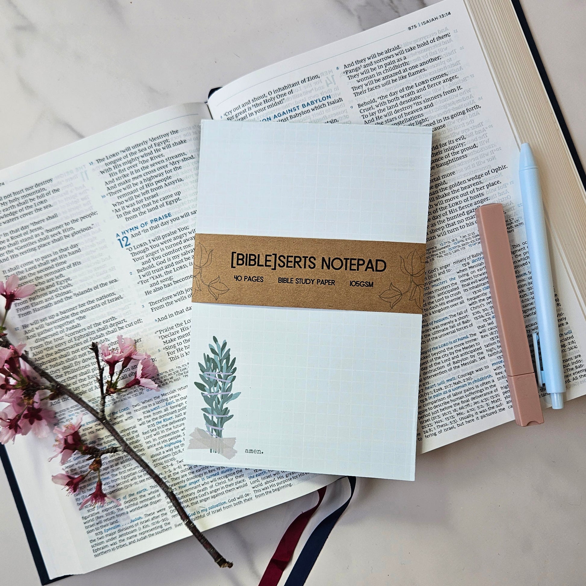 Thoughtfully crafted for those who love to dive deeper into Scripture, this handmade notepad is designed specifically to add extra note-taking space to your Bible. Whether you're jotting down sermon reflections, study insights, or prayers, these slim, high-quality pages fit neatly inside a standard 6.25"x 8" Bible.