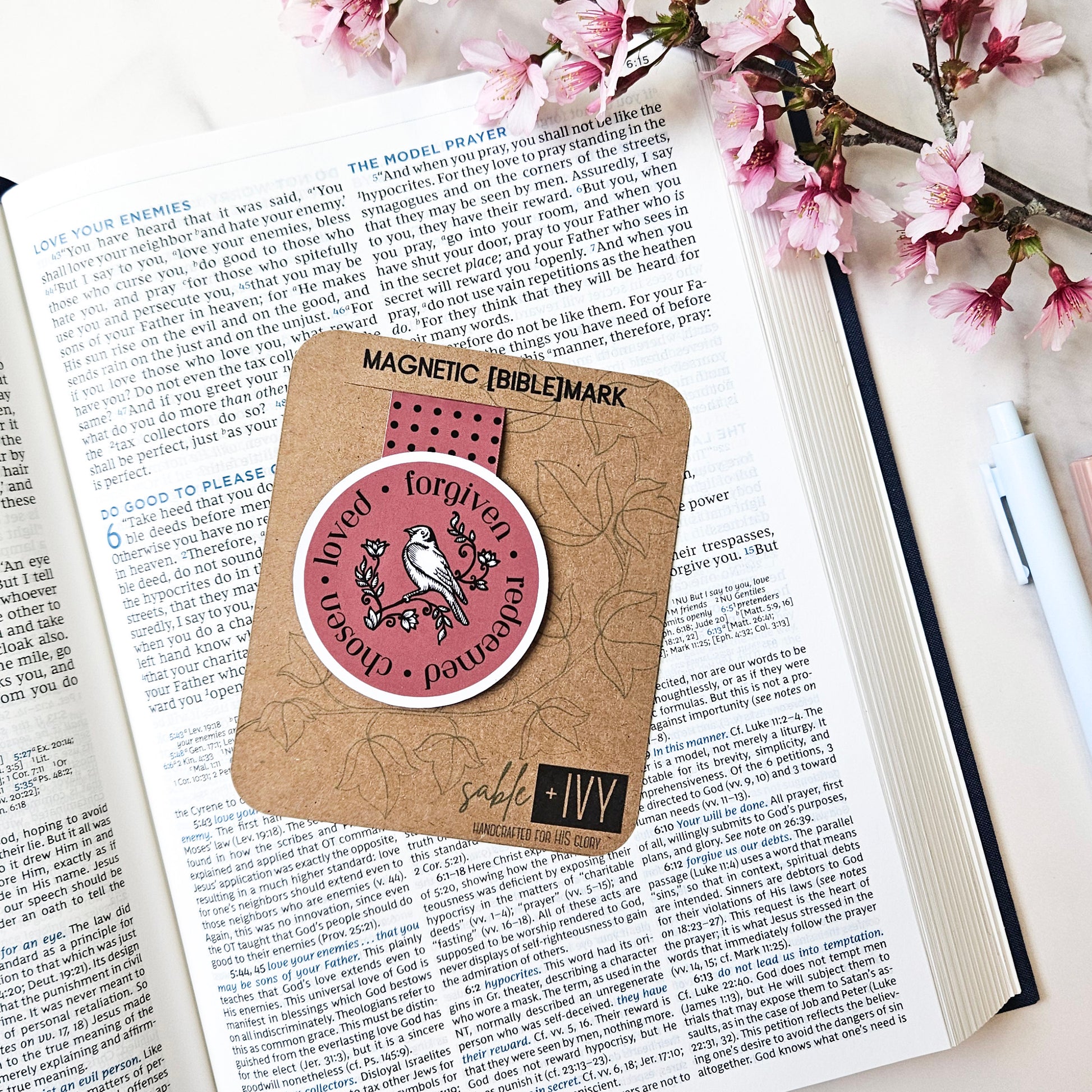 The perfect bookmark for your Bible, devotional or journal! Our magnetic [BIBLE]MARK clips over your page, so you don't lose your spot. Our magnet is strong enough to securely hold up to -- pages.